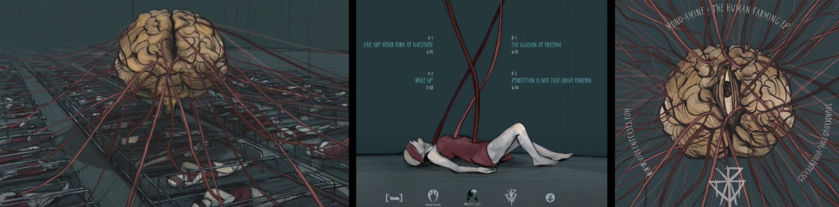 Attached artwork is from screenshots from this YouTube video . (Starts off with reference to 23 as well. Ahh!!) I couldn’t listen to the sound, but the imagery was what I was looking for to an extent. (Though really we've got sunny skies and we THINK we are happily “living”, but we are in captivity and being JUICED.)