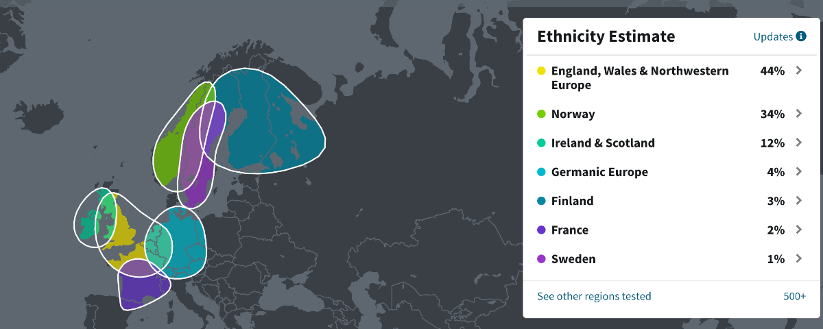 In my ancestral-earth based family DNA, there is quite strong Norwegian DNA...Welsh too, I think... ah, here's the breakdown...